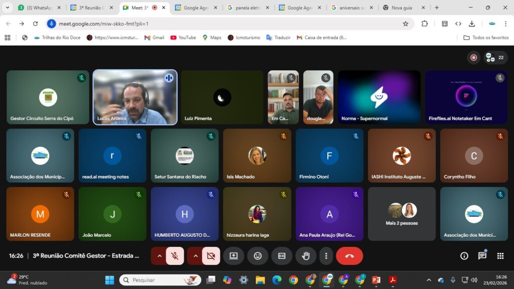 A IGR Trilhas do Rio Doce Rio Doce participou de uma reunião com os representantes do projeto da Estrada Cênica no dia 23/02/2026. O encontro teve como pauta sobre a elaboração do estatuto e do regimento interno, da logomarca e outros informes gerais. Essa reunião foi uma oportunidade para fortalecer parcerias, alinhar estratégias e acompanhar o progresso das ações relacionadas à Estrada Cênica.